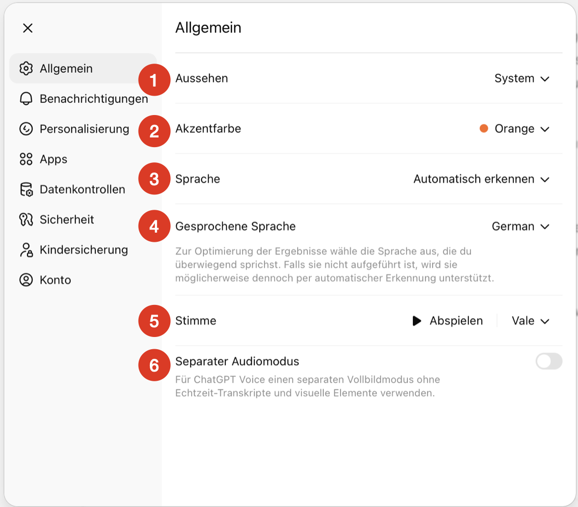 Separater Audiomodus:Der separate Audiomodus schaltet ChatGPT in eine Art reinen Hör- und Sprechmodus. Die Interaktion funktioniert dann wie ein Gespräch, nicht wie ein Chat.