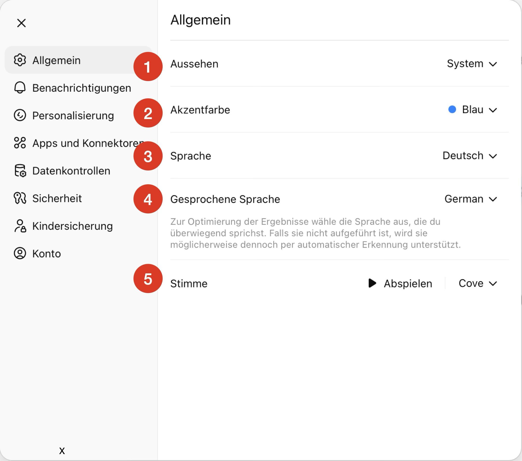 : Für Sprachfunktionen wird die gesprochene Sprache erkannt oder festgelegt.