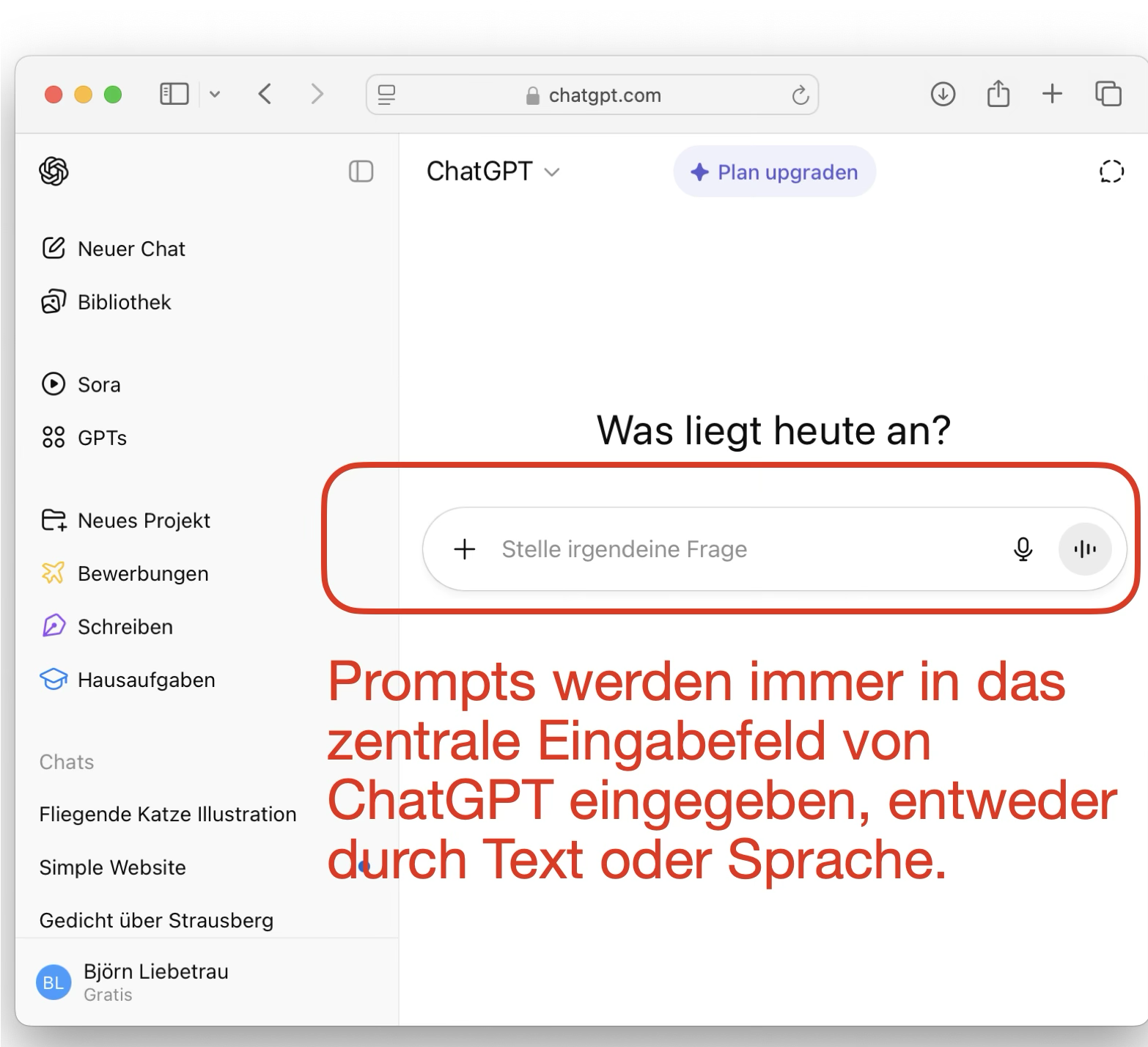 Definition: Ein Prompt ist eine Eingabe oder Anweisung an ChatGPT – z. B. eine Frage oder Aufforderung –, auf die die KI reagiert.